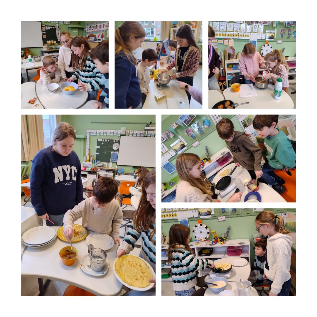 Maria Lichtmis = pannenkoeken! Een samenwerking tussen het 1e en 6e leerjaar. 🥞😋 Ondertussen werden er volop gekke wezentjes gecreëerd door de kinderen van het 2e en 5e leerjaar.