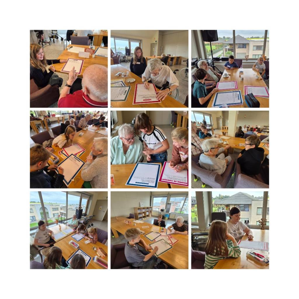 Een gezellige namiddag met de 3e graad op bezoek bij de bewoners van Groendorp. Aan de hand van vragen over het leven vroeger en nu tot een gezamenlijke tekening komen.